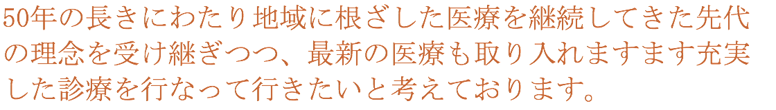 当院は私の祖父である森川良夫が昭和43年に能勢町今西に開院致しました。その後 父森川力が継承し平成5年に医療法人を開設致しました。その後平成25年3月より私が継承させて頂いております。この能勢の地に開院してから50年以上の長きにわたり地域に根ざした医療を継続してきた先代の理念を受け継ぎつつ最新の医療も取り入れ、ますます充実した地域医療を行なって行きたいと考えております。さらに、当院における診療のみならず、周辺の連携医療機関とも関係を密にし、また訪問看護ステーションとの連携も図り在宅医療の充実にも努力したいと思っております。安心して何でも相談できるかかりつけ医として地域の皆様の健康を守るお手伝いが出来ることを願っております。